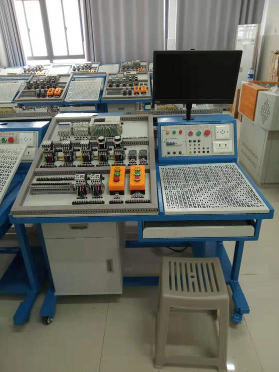 ▲设备由实训屏(内置电源)、实训桌(含键盘)、储物柜三大部分组成。钢制表面经高温喷塑处理,美观大方且有效起到防锈绝缘的作用;电源箱的布局依次为电源保护装置、电源指示装置、电源输出;实训桌左侧安装有角度可以调节的嵌入式的考核平台1张,所有元器件均采用端子引出,学生接线只需在端子上进行接线,可以有效的保护元器件,转接端子采用接插两用端子排,方便与元器件和实训电源屏的连接,右侧装有网孔板一块,角度可调嵌入式安装;实验桌底部装有至少4个导向轮,方便设备移动;储物柜采用标准结构和抽屉式,用于存放工具以及实训资料。电脑通过可调节电脑支架安装于电源屏的上方。
