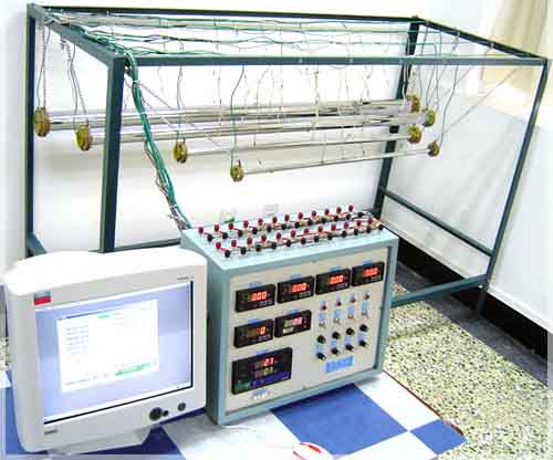 主要配置:本装置配有四根不同长度和直径的电镀紫铜管,管内设置加热器,固体调压模块无机调节加热,测温传感器,电功率测试数显仪表,8路万能信号输入巡检仪显示温度,每一根管配有温度控制仪表,支架等。II型增加带标准信号的16路万能信号输入巡检仪,增加带标准信号的数显电流表电压表,软件等。