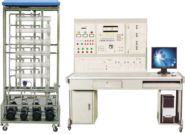 装置集PLC、变频调速、过程控制、工程组态技术于一体。它由六层住宅消防、生活供水系统(实物模型),控制平台两大部分组成,包含了可编程控制器、变频器、变频磁力驱动泵、休眠泵、消防泵、压力变送器、压力仪表、输水管道、消防栓、家用水龙头、蓄水池等工程设备。控制平台采用PLC+变频器的开放式控制结构,可以完成多种模式下的楼层恒压供水实训实训,为教学研究变频恒压供水技术提供一个开放的操作平台。
