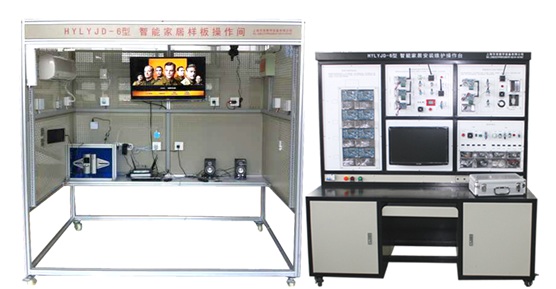 1 智能家居样板操作间 1、 整套设备采用钢结构及铝合金型材承重支架,组成半封闭实训环境;模拟真实家居环境。