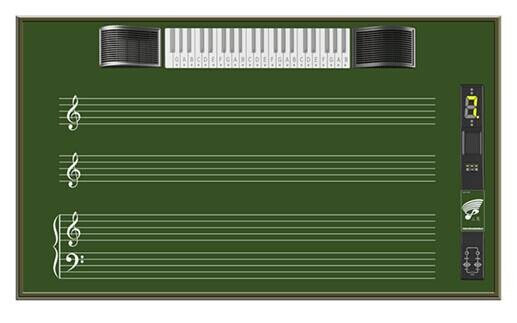 3、五线谱表:两组高音谱表,一组大谱表,粉笔书写,电教鞭触动发音。