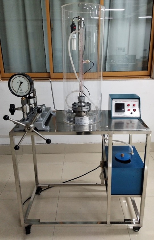 3、高压容器,用45号钢加工焊接而成,表面采用镀铬处理;高压玻璃管,厚度3mm,耐压11MPa。