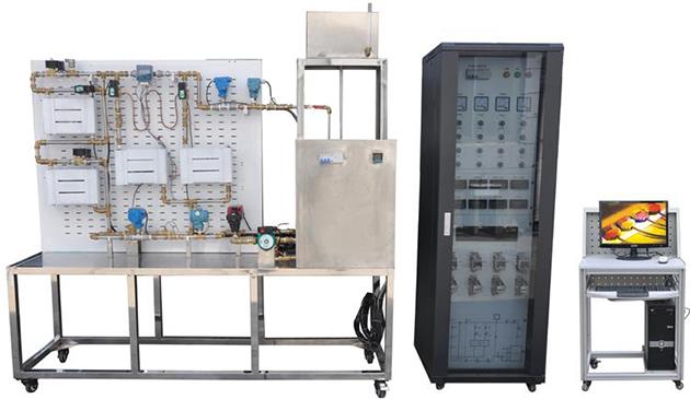 热水供暖循环系统综合实训装置” 以可编程控制器PLC为控制核心,上位机组态软件作为监控界面,实时显示工作状态与运行参数。系统主要由电热水锅炉、供热管道和散热片三个基本部分组成,并设有膨胀水箱、循环水泵、热量表、自力式压差控制阀、电动流量调节阀、电磁阀、自动排气阀、温度采集模块、压力采集模块、流量采集模块等附属设备,可组成单管顺流式、单管跨跃式、双管上供下回式三种不同的系统形式。适用于高职院校、职业学校空调工程专业、供热通风和建筑专业等相关课程的教学实训。
