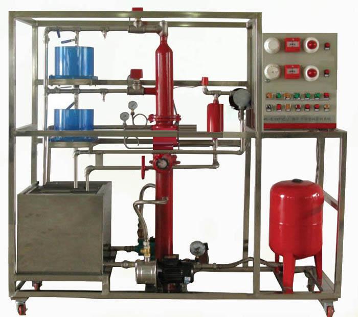 模型框架和水箱等主要部件全部使用不锈钢器件,保证不生锈、不易老化,可以模拟两层大楼喷淋灭火系统;模型系统主要由喷淋水泵、气压罐、湿式报警阀、水力警铃、延时器、压力开关、水流指示器、封闭式喷头、试验阀、火灾探测器、火灾报警器等典型喷水灭火设备构成,能生动模拟大楼内水灭火系统的典型结构。